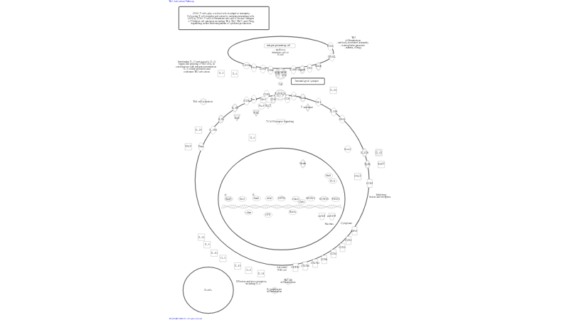 The initial step of differentiation of the naive T-cells is the antigenic stimulation as a result of interaction of the genetically variable TCR and co-receptor CD4 with antigen-MHC II complex, presented by professional antigen presenting cells (APCs). Upon activation by T cell receptor (TCR)- and cytokine-mediated signaling, naive CD4+ T cells may differentiate into at least five major types of T helper (Th) cells, Th1, Th2, Th17, Tfh, and inducible T regulatory (iTreg) cells, that play a critical role in orchestrating adaptive immune responses to various microorganisms. A lack of sufficient stimulation from secondary signals like the cytokines, CD28, and Notch at this point may conversely lead to anergy or even apoptosis.To initiate Th2 differentiation, many cytokines including IL-4, IL-2, IL-7 and thymic stromal lymphopoietin (TSLP) may be involved, though eventually IL4 plays the leading role in autocrine self-reinforcement. T-cell receptor activation causes two parallel events in cells destined for the Th2 fate. It directly stimulates a modest but significant increase in Gata3 mRNA, which rises steadily until ~24h after stimulation. In parallel, TCR engagement induces IL-2 production, which, in turn activates Stat5. The combination of early Stat5 activation and Gata3 induction leads to IL-4 production. This 'early IL-4' is TCR dependent but IL-4 independent. However, once the 'early IL-4' accumulates sufficiently, it signals through the IL-4R/Stat6 pathway to strikingly upregulate Gata3, which together with continued Stat5 activation, results in a further upregulation of IL-4 mRNA and thus to a positive feedback loop that results in the commitment to the Th2 phenotype.The essential transcription factors of Th lineages are T-bet/Stat4 (Th1), Gata3/Stat5 (Th2), RORγt/Stat3 (Th17), and Foxp3/Stat5 (iTreg), respectively. T-bet is regarded as the master regulator for Th1 cell differentiation and IFNγ production. Th2 helper cells are host immunity effectors against extracellular parasites including helminths. They are triggered by IL-4 and their effector cytokines are IL-4, IL-5, IL-9, IL-10 and IL-13. They partner with B-cells, eosinophils, and mast cells to make humoral antibodies and granulocytic responses to large pathogens.
