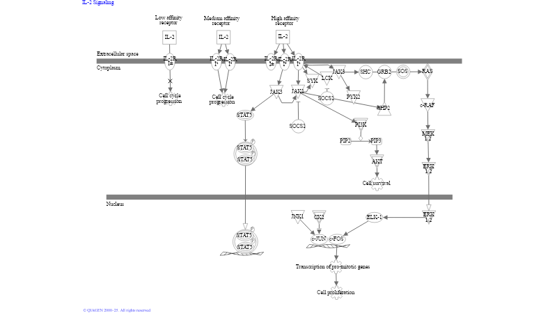 Interleukin 2 (IL-2) is a growth factor that is important for proliferation and homeostasis of lymphocytes. The IL-2 receptor (IL-2R) contains the following three subunits: the α chain (IL-2R ), which is expressed only on activated lymphocytes; theβ chain (IL-2R ); and the γ common chain (IL-2Rγ c), a subunit shared by several cytokines. The cytoplasmic domains of IL-2R subunits do not possess intrinsic enzymatic activity; rather, IL-2 binding induces oligomerization of IL-2R, which initiates activation of several protein tyrosine kinases (PTKs) and subsequent phosphorylation of the IL-2R complex.The Janus kinases (JAKS) family of PTKs play a central role in IL-2 signaling. JAK3 constitutively binds the cytoplasmic domain of IL-2Rγ c as well as IL-2Rβ , while JAK1 constitutively interacts with IL-2Rβ...