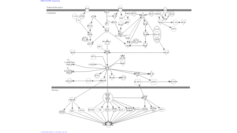 The multifaceted roles of the ERK/MAPK signaling pathway underscore its importance in both normal physiological processes and in the pathology of diseases. Its involvement in such a wide range of cellular functions makes it a critical area of study in understanding the fundamental aspects of cell biology and developing therapeutic strategies for various diseases, particularly those where its dysregulation plays a key role.