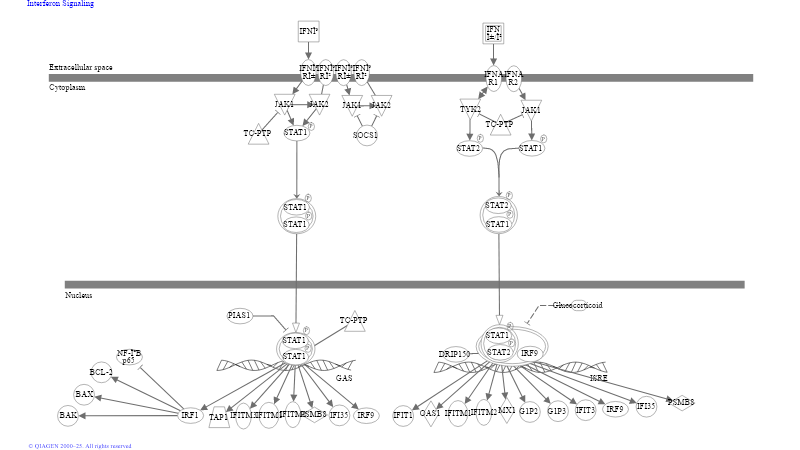 Interferons (IFN) are cytokines that play a central role in initiating immune responses, especially antiviral and antitumor effects. They are divided into three classes:Type I (predominantly IFN-α, -β and -κ), Type II (IFN-γ) and Type III (IFN-λ1 and -λ2 also known as IL-28 and IL-29). IFN receptors are transmembrane proteins that function as heterodimers. The Type I IFN receptor is made up of IFNAR1 and IFNAR2 while the type II IFN receptor consists of IFNGR1 and IFNGR2. Type I and Type II IFNs bind to IFNAR1 and IFNGR1 respectively while IFNAR2 and IFNGR2 subunits are involved in signal transduction...