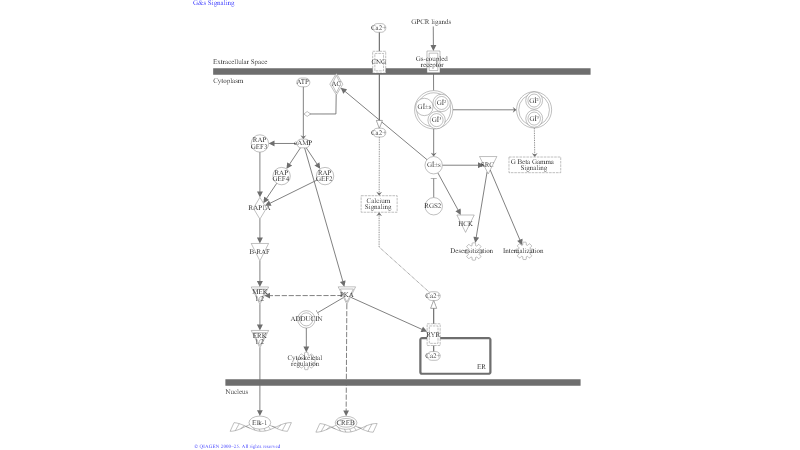 G-proteins are heterotrimers, consisting of an α, β, and γ subunit. They are involved in signal transduction for a number of types of ligands such as hormones, neurotransmitters and chemokines. These extracellular signals are received by members of a large superfamily of receptors, the GPCRs, that activate the G-proteins, which then route the signals to several distinct intracellular signaling pathways thus initiating changes in cell behavior. In the inactive heterotrimeric state, GDP is bound to the G-α subunit. Upon activation, GDP is released, GTP binds to G-α, and subsequently G-α-GTP dissociates from the G-βγ heterodimer and from the receptor...